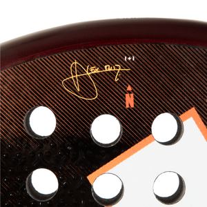 DUAL EXOSKELETON: Double-height carbon nerve structure reinforcing the core and frame of the racquet to increase torsional resistance.