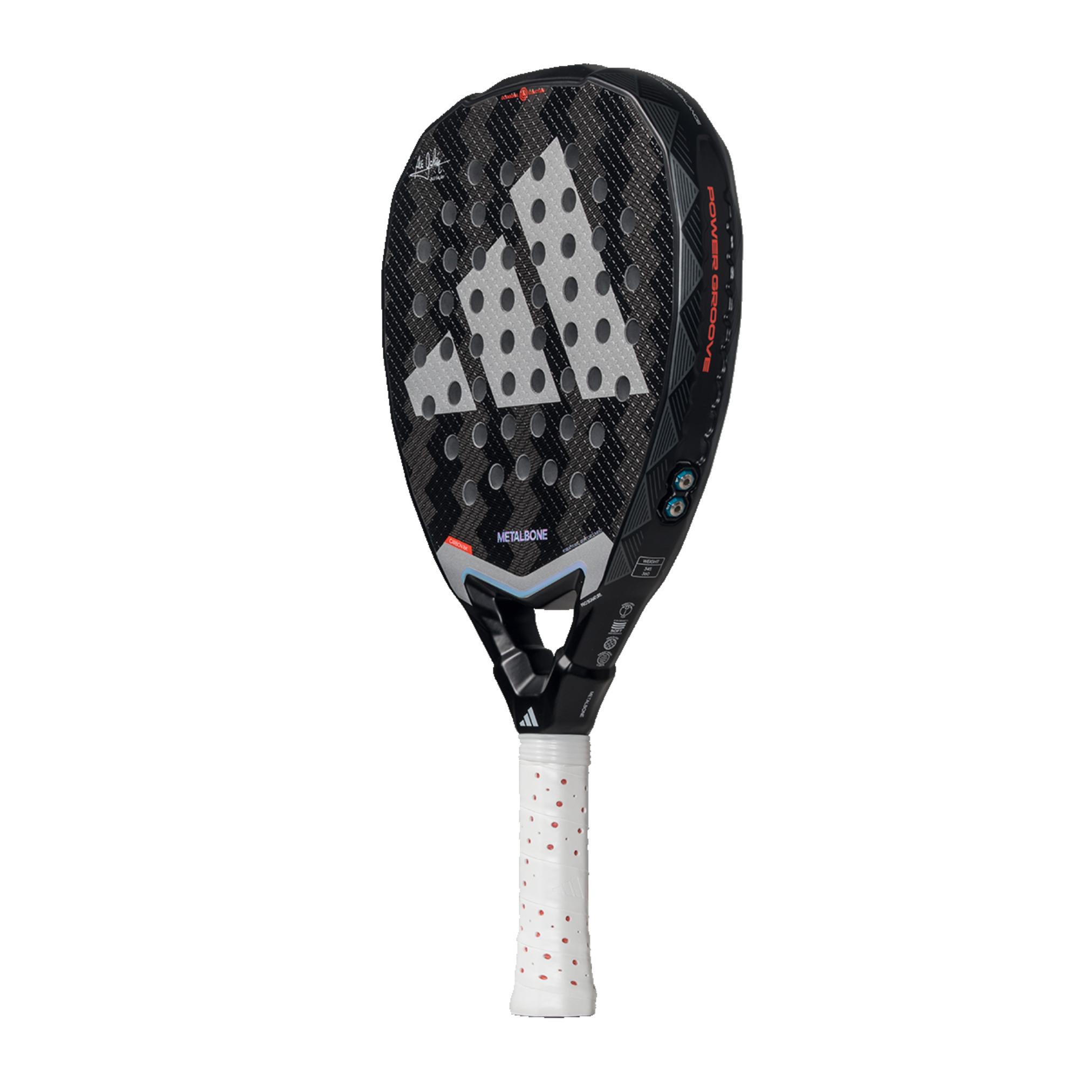 The Metalbone 3.4 is Ale Galán’s latest padel racket for 2025, designed to elevate padel technology to new heights. Featuring the innovative Weight & Balance System, it allows for precise customisation to suit your playing style. The extended Power Extra Grip handle, combined with the low-polyhedron design of the frame and core, delivers exceptional power. With its diamond shape, premium materials, and Power Groove rail in the racquet frame, this racquet offers an unrivalled level of performance.